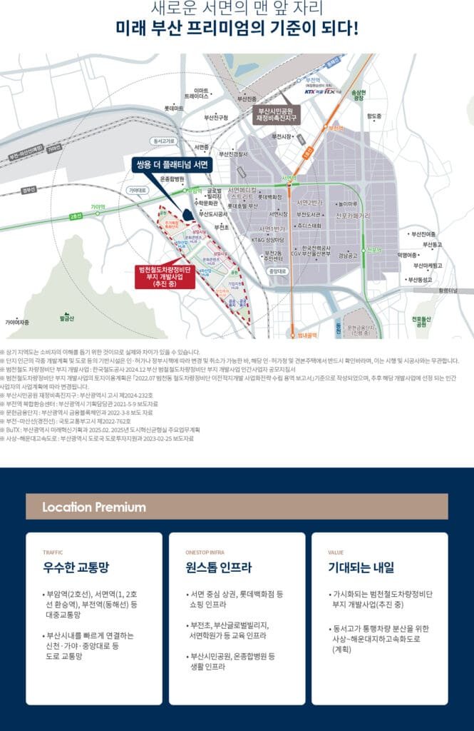 동래반도 유보라 GRAND OPEN Welcome To 온천천 바로 앞 원스톱 라이프48층 랜드마크 부산광역시 중심 동래구 낙민동의 이유 있는 완벽한 변화전통적인 명문학군 및 학원가, 트리플 역세권, 한걸음에 이용할 수 있는 편리한 인프라 [온천천 수변공원, 어린이복합문화공간 등]대표번호 1688-2858 관심고객등록 부산의 중심 동래구 낙민동의 이유 있는 변화미래 부산 프리미엄의 기준이 되다! 부산 생활·교육·산업·교통까지 모두 품은 초프리미엄 TRAFFIC 부암역(2호선), 서면역(1, 2호선 환승역), 부전역(동해선) 등 대중 교통망 LIFE 서면 중심 상권, 롯데백화점 등 쇼핑 인프라와 부산시민공원, 온종합병원 등 생활인프라 LOCATION 부산시내를 빠르게 연결하는신천·가야·중앙대로 등 동서고가 통행차량 분산을 위한 사상~해운대지하고속화도로 EDUCATION 부전초, 부산글로벌빌리지, 서면학원가 등 아이를 위한 우수한 교육 인프라 부산 시내외 내륙의 중심 세대수 0 세대 대지면적 0 ㎡ 주차대수 0 대 OUR GALLERY 탁 트인 조망의 48층 초고층 랜드마크 OUR VISION 쌍용 더 플래티넘 서면을만나는 좋은 기회 계약금 입주시까지 중도금 청약절차/청약통장 X 프리미엄 브랜드 특화 대단지 정액제 합리적인 내 집마련 기회 Contact Us 방문예약 상담신청1688-2858 로얄층문의 잔여세대문의 위치안내 문의하실 부분이 있으시면 내용을 남겨주세요.빠른 시일 내에 연락 드리겠습니다. 이 양식을 작성하려면 브라우저에서 JavaScript를 활성화하십시오.이 양식을 작성하려면 브라우저에서 JavaScript를 활성화하십시오.성함연락처방문인원 및 연락처 이용 개인정보 수집 및 이용 동의 *개인정보 수집 및 이용 동의제출